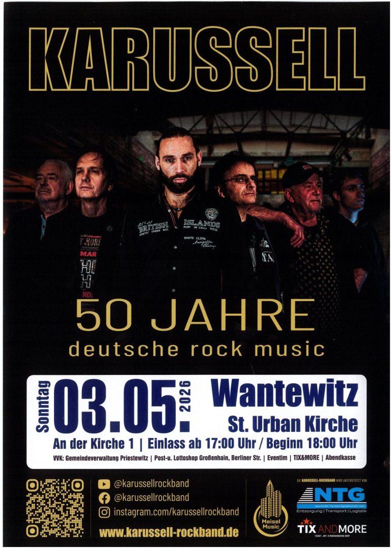 50 Jahre Gruppe Karussell – Jubiläumstour: Sonntag 03. Mai 18:00 Uhr – Kirche Wantewitz