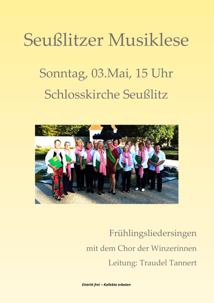 der Chor der Winzerinnen viele der bekannten Frühlingslieder erklingen lässt – zum Zuhören und zum Mitsingen! Im Anschluss reichen wir wie immer einen Schoppen Wein im Seußlitzer