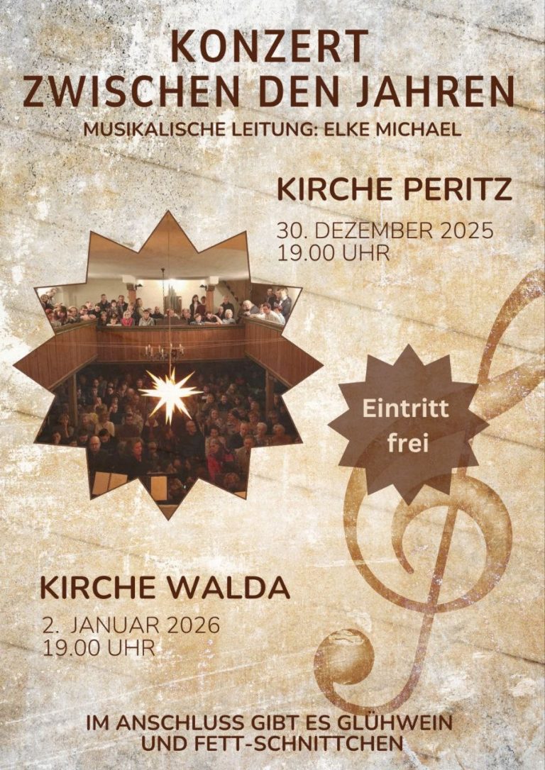 In der Kirche Walda-Konzert zwischen den Jahren am Freitag, den 02.01.2026 mit dem Projektkirchenchor Streumen